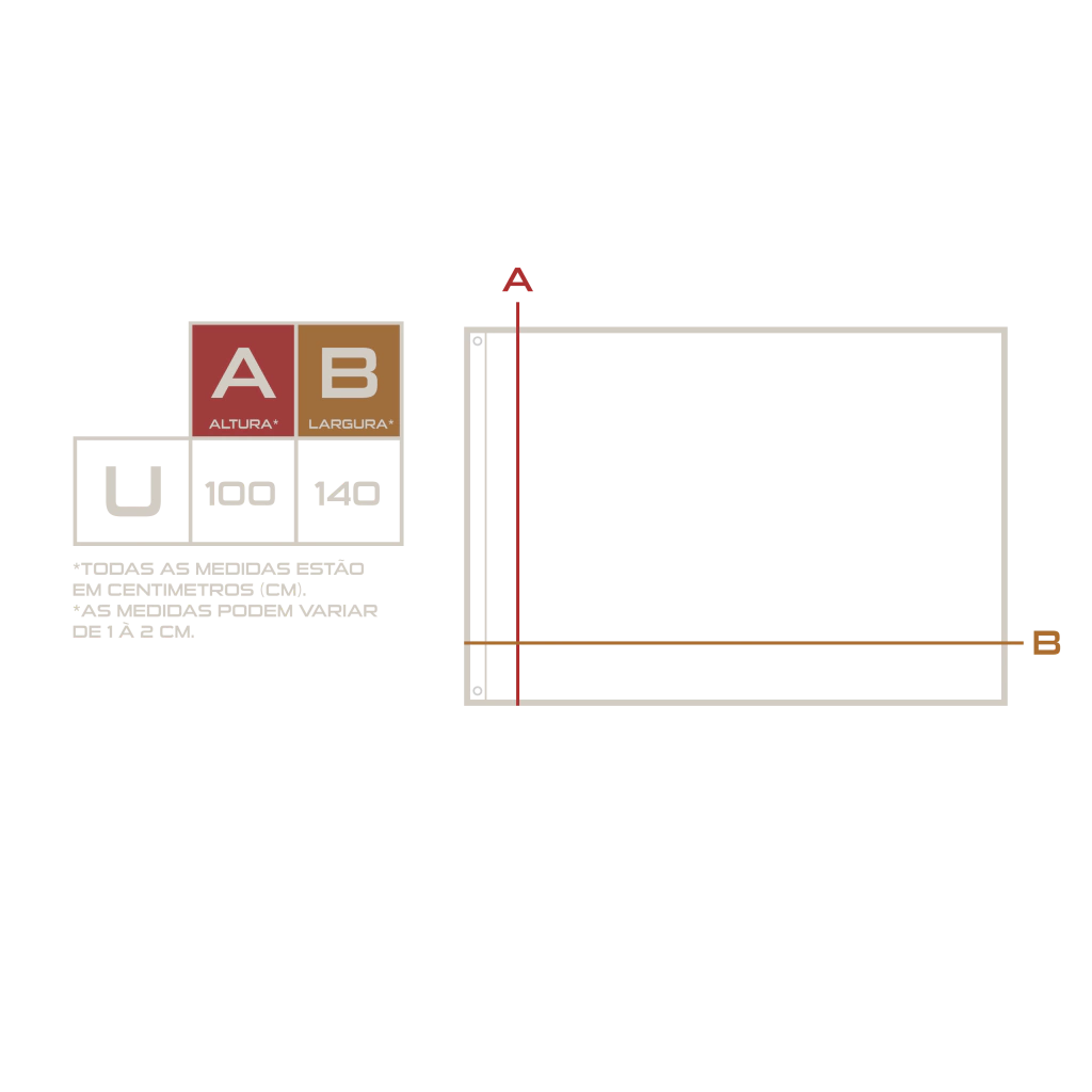 Bandeira dupla face de tecido duplo, dupla costura e faixa lateral reforçada. Tamanho grande de 1,00m x 1,40m.