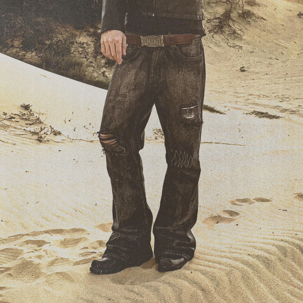 REQUIEM x HUMANITÉ — WAXED FLARE PANTS 'ANVIL'